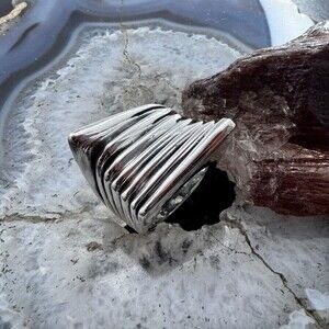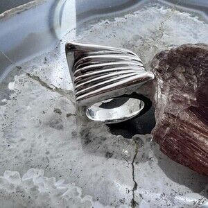 Sterling Silver Electroform Irregular Geometric Ring For Women, Taxco Mexico