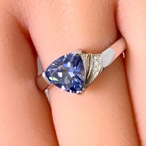 Sterling Silver Elegant Trillion Cut Tanzanite Ring New