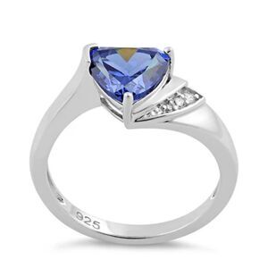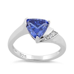 Sterling Silver Elegant Trillion Cut Tanzanite CZ Ring