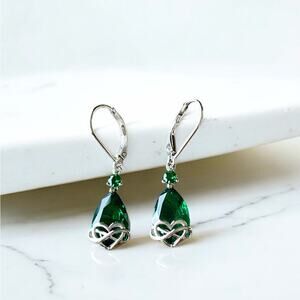 Sterling Silver Emerald Cubic Zirconia Teardrop Heart & Infinity Earrings NEW