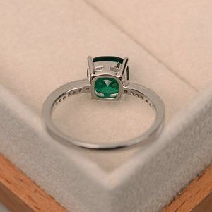 Sterling Silver Emerald Diamond Cushion Cut Ring