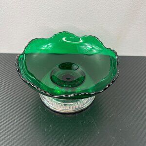 Sterling Silver & Emerald Green Glass Frank Whiting Compote Bowl Candy Dish 2074