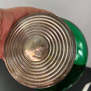 This vintage green glass compote dish features a charming pedestal design with an ornate sterling silver base, adding an elegant touch to your décor.