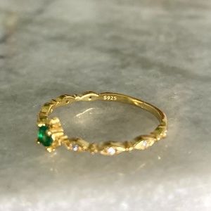 New with tags Sterling Silver Emerald Green and Simulated Diamond Gold Ring