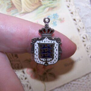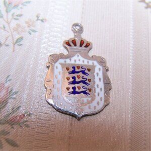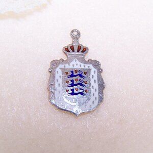 Item: Sterling Silver (hallmarked as pictured) and enamel charm depicting the Royal Coat of Arms of Denmark.