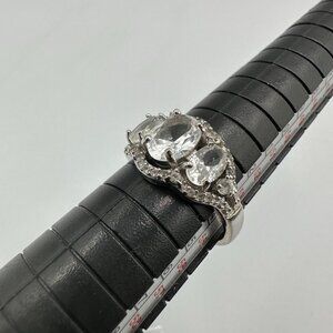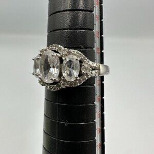 Sterling Silver Engagement Ring Size 7 Three Oval Clear Stones Wedding Elegant