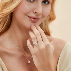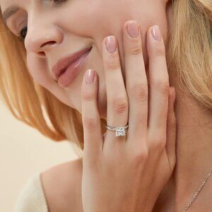 Sterling Silver Engagement Ring with Cubic Zirconia Size 7 Wedding Band for Her