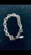 Sterling silver plated stainless steel unisex engraved cross heart chain link bracelet. Measures 6.5"-8" adjustable size.