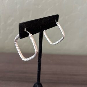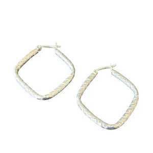 Sterling Silver Etched Diamond Shaped Hoop Earrings