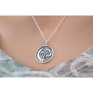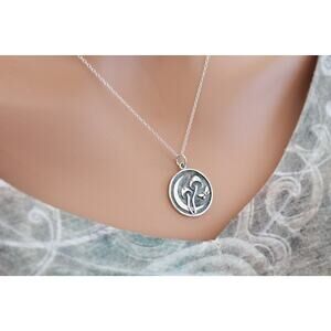 This is Sterling Silver Etched Mushroom and Moon Charm Necklace. Both the charm and the necklace are Sterling Silver. This charm comes on an 18 inch chain.