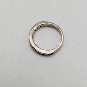 Sterling Silver Eternity Ring With Clear Glass Rhinestones Vintage Signed