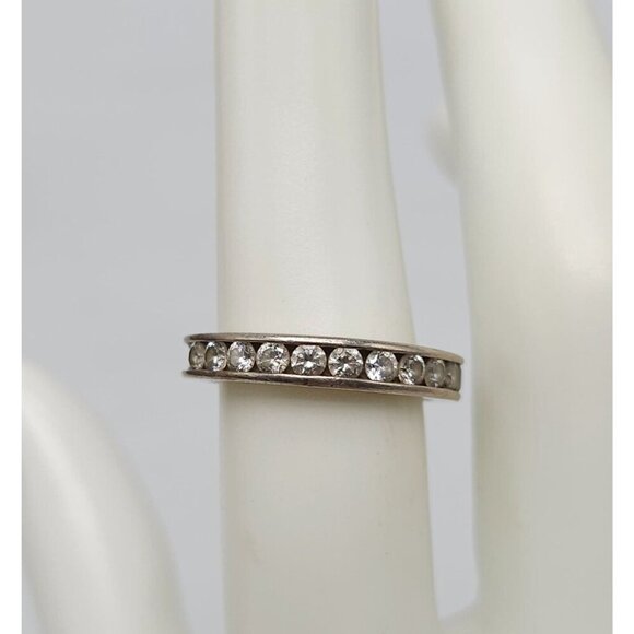Sterling Silver Eternity Ring With Clear Glass Rhinestones Vintage Signed