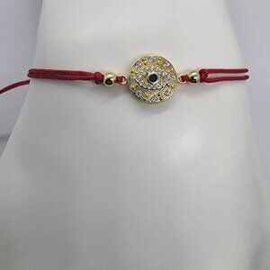 Protect your energy in style with this elegant Evil Eye Bracelet, designed with a bold red string and a dazzling Evil Eye charm made from 925 sterling silver, dipped in gold, and accented with shimmering cubic zirconia stones.