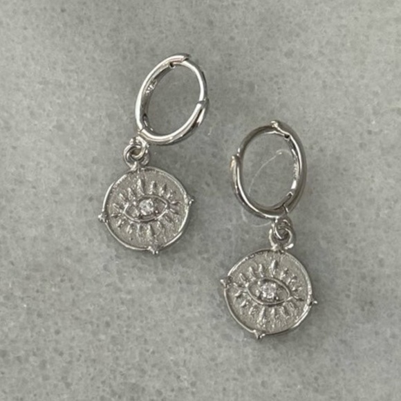 Sterling Silver Evil Eye Coin Crystal Earrings Brand New