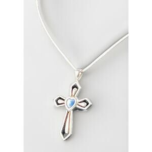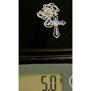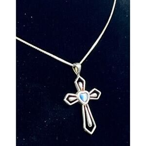Blue center moonstone , Sterling Silver Christian Cross pendant on a 925 Sterling Silver chain 18” necklace.
