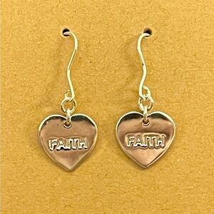Sterling Silver FAITH Engraved Heart Dangle Earrings