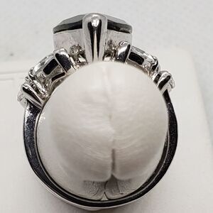 Sterling Silver FAS Ring with Large Green Stone & 6 Clear Stones
