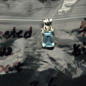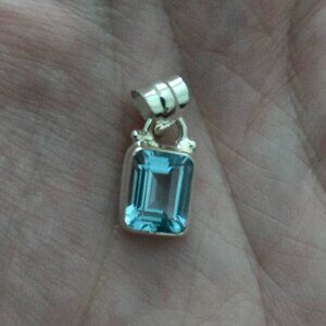 Sterling Silver Faceted Blue Topaz Pendant - Natural Gemstone
