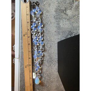 This elegant necklace features a mix of shimmering opalite and clear glass beads, offering a sophisticated touch to evening or formal attire.