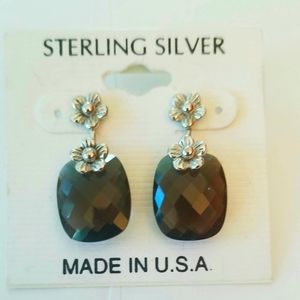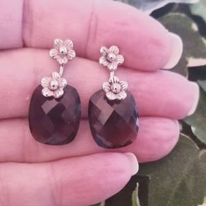 Beautifully Checkerboard faceted smokey quartz earrings in sterling silver by A. Jaron. The gemstone is moveable.