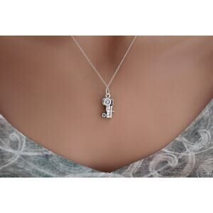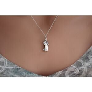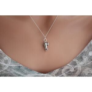 This is a Sterling Silver Oxidized Tractor Necklace. Both the charm and the necklace are Sterling Silver. This charm is on an 18 inch chain.