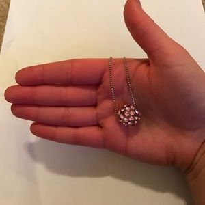 Beautiful Italian Sterling Silver Necklace. Pendant is a clear sphere containing faux pink crystals. I don't remember the brand, I just remember it was something Italian. Super pretty. Worn only a few times