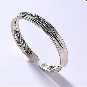 Sterling silver cuff feather bangle bracelet adjustable in size