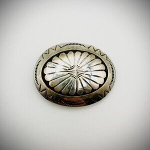 Beautiful vintage-style sterling silver earrings featuring hand-stamped domed conchos with genuine turquoise cabochons and double feather dangles.