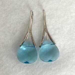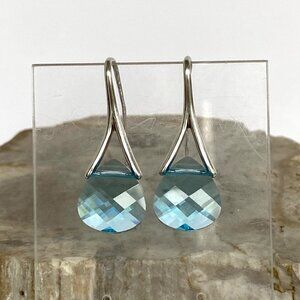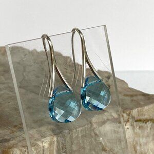 Sterling Silver Felicia Designs FD 925 Faceted Teardrop Blue Glass Dangle Earrings