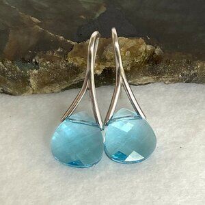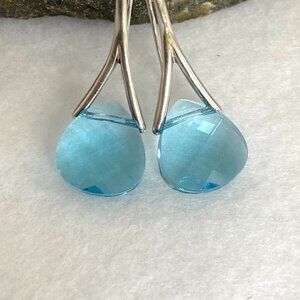 Sterling Silver Felicia Designs FD 925 Faceted Pear Blue Glass Dangle Earrings