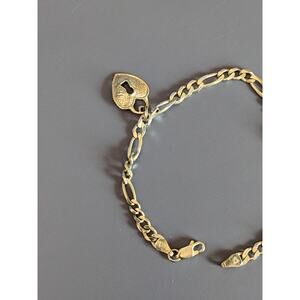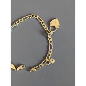Sterling Silver Figaro Chain Bracelet with Heart Charms