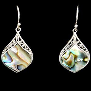 Sterling Silver Filigree Abalone Drop French Wire Earrings