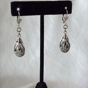 Sterling Silver Filigree Puffy Teardrop Earrings