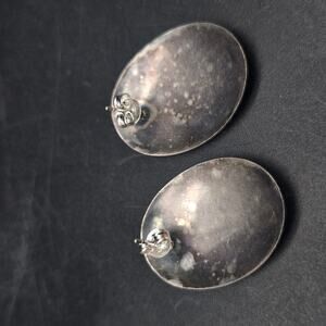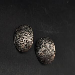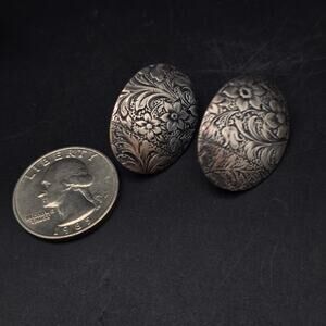 These vintage sterling silver earrings are for pierced ears and feature 1" L x .75" ovals with a floral design