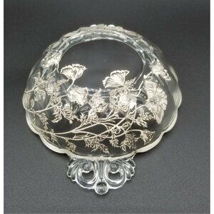 Sterling Silver Floral Overlay Glass Candy Dish Scalloped 2 Reticulated Handles