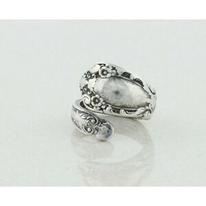 Sterling Silver Flower Spoon Ring size 7 1/4 Adjustable