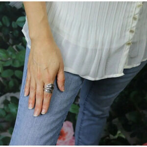 Sterling Silver Flower Spoon Ring size 7 1/4 Adjustable