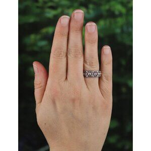 Sterling Silver Flower and Marcasite Band Ring Size 7 3/4