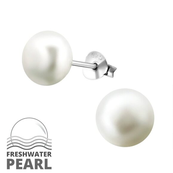 Sterling Silver Freshwater White Pearl Studs 8mm