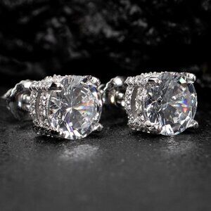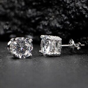 These dainty small men's womens round studs are classic earrings for any man or woman. Simple, sophisticated and classy round stone encircled by Cubic Zirconia halo add elegance that dress up your daily wardrobe or evening wear. 5A cz add just the right amount of sparkle.
