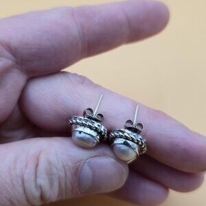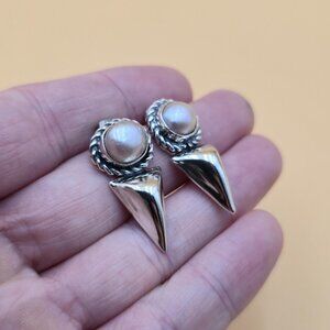Sterling Silver Genuine Pearl Unique Design Earrings A5349