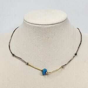 Sterling Silver Gold Native American Genuine Raw Turquoise Necklace