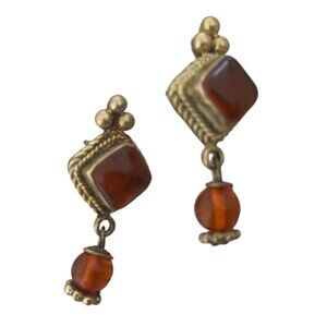 Sterling Silver Gold Plated Carnelian Drop Earring studs ornate oriental