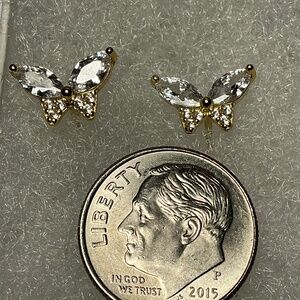 Sterling Silver Gold Tone Butterfly 🦋 Stud Earrings with