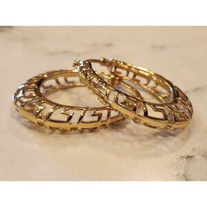 Elegant and timeless, these sterling silver gold-tone hoop earrings feature a Greek key design, perfect for adding a sophisticated touch to your jewelry collection.