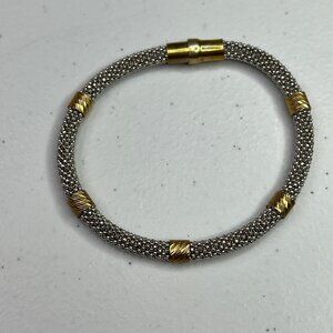 Sterling Silver & Gold-Tone Mesh Bracelet With Twist Accents 925 Italy