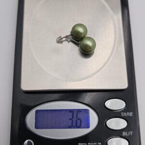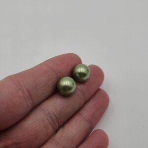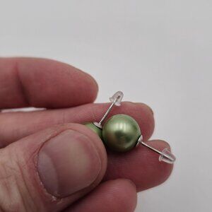 Sterling Silver Good Size Faux Green Pearl Stud Earrings A2717