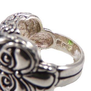Sterling Silver Green CZ Scroll Large Ring Size 6.25
