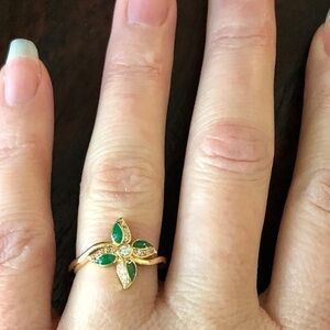 Spring/summer jewelry, everyday wear, gift for her, anyone who loves floral jewelry, romantic style lovers, emerald/green jewelry collectors, delicate ring enthusiasts.