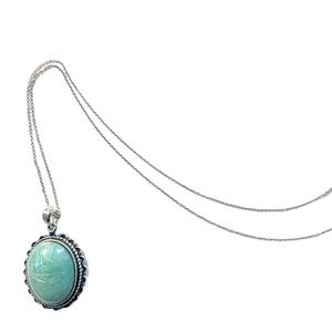 Vintage Sterling Silver Oval Green Gemstone Necklace